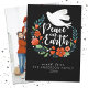 Une jolie carte de Noël avec une colombe dans une couronne fleurie avec les mots paix sur Terre. La carte de Noël est conçue en noir, blanc et rouge. Personnalisez-le avec votre nom, l'année et votre photo de famille au dos de la carte. Conçu pour vous par Blackberry Boulevard.