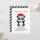 Le panda de Noël mignon se porte sur l'invitation de Noël arrière - plan blanc. Le texte est prêt à être personnalisé.