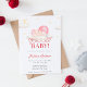 La carte d'invitation à la douche "Père Noël Baby" a un design doux et festif, avec un bébé dans un chapeau de Père Noël rose avec nuages et étoiles doux. Il utilise un script rouge ludique et des tons pastel, créant une atmosphère de vacances confortable, parfait pour un baby shower d'hiver.