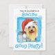 Invitation tous vos amis à une fête de Noël Howling Good avec ces invitations montrant un Terrier soyeux mignon portant un chapeau de Père Noël entouré d'un tas de flocons de neige. Bonne fête de Howliday !