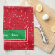 Rouge avec étoiles blanches motif sur cette serviette de cuisine personnalisée rouge et verte. Modifiez facilement le texte pour le rendre vôtre en utilisant le Modèle fourni. Cette grande serviette de 16 po x 24 po est en microfibre tissée polyester/mélange de polyamide à 80 % durable. Idéal pour sécher et lavable à la machine. Fabriqué à dernier terme. Pour plus d'informations, reportez-vous à la section "À propos de ce produit" à côté.