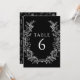 Améliorez votre réception de mariage avec ces numéros de table noirs élégamment intemporels avec une délicate couronne de fleur sauvage noir et blanc. Ambiance classique et sophistiquée pour vos invités avec ce charmant ajout à votre décor de table.