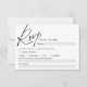 Elégant noir blanc calligraphie chic mariage rsvp avec script signature. Ajoutez les choix alimentaires, les allergies et le choix de la chanson.