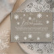 Feiern Sie die Saison mit dieser eleganten Foto-Urlaubskarte, die in einer landschaftlichen Ausrichtung entworfen wurde, um Ihr Lieblingsfamilienbild schön zu präsentieren. Die Vorderseite weist einen glitzernden Akzent unter dem Foto auf (vorzugsweise dunkler), wo Ihr Familienname und das Jahr personalisiert sein können. Feine festliche Glitzern fügen eine Touch der Magie hinzu, während die Rückseite eine herzliche Urlaubsbotschaft zeigt, die von bezaubernden Schneeflocken vor einem klassischen schwarzen Hintergrund gerahmt ist. Eine zeitlose und stilvolle Art, Ihre wärmsten Weihnachtswünsche mit Lieben zu teilen.