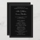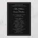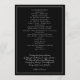 Modèle de programme de mariage noir clair avec texte blanc sur les deux côtés des cartes plates. Taille 5x7 la conception de l'échantillon s'adaptera à quelques autres tailles. Ces cartes ont également des mises à niveau optionnelles du papier. Les polices de texte imprimées et manuscrites sont faciles à customiser à l'aide des sections modèle. Un mince jeu de lignes fait une bordure autour du bord des cartes pour encadrer le texte. Customisez le titre du programme, indiquez la date et l'heure de l'événement, l'ordre de la cérémonie et indiquez la fête de mariage. Un modèle à l'arrière peut être utilisé par le couple pour écrire un message personnel aux invités. Ou utiliser l'espace pour mentionner les parents qui ne sont plus en vie, mais présents dans les coeurs. Ce programme simple qui fonctionne pour de nombreuses cérémonies de mariage.