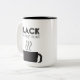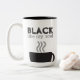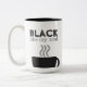 Drôle Tasse à café lisant "Noir comme mon âme". Illustration d'une tasse de café graphique à vapeur.