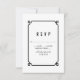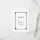 Carte RSVP simple et minimaliste Déco Chic Wedding avec une bordure décorative moderne d'art noir. Cette carte de réponse classique et élégante est facile à customiser avec vos détails mariages. Pour plus d'options de personnalisation, cliquez sur Personnaliser.
