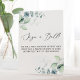 Ce délicat eucalyptus noir signe une bille est parfait pour un mariage moderne. Le design minimaliste romantique présente une belle et élégante typographie noire avec une végétation d'eucalyptus.