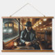 Noir Detection auf einer Rainy Train Journey Wandteppich Mit Holzrahmen