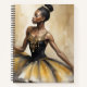 a bailarina afroamericana resplandece en un tutú negro y dorado, una combinación que destaca su belleza y elegancia en el escenario.