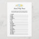 Un jeu amusant pour le baby shower est le jeu de noms de bébé animal. Cette carte de jeu présente des fleurs bleues en haut. Au verso, un ours en peluche s'appuie sur un tonneau de miel en regardant une abeille au miel avec des modèles.