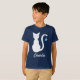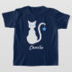 Dessin en silhouette d'un chat blanc aux yeux bleus. Une étoile bleue glacée est accrochée à la queue du chat. Un nom personnalisé se trouve sous le chat en texte blanc.
