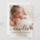 Cet élégant faire-part de naissance photo dispose d'une grande photo et d'une calligraphie moderne. Le prénom de votre nouveau-né est écrit en joli script, et des détails supplémentaires peuvent être ajoutés ci-dessous. Le texte noir recouvre une photo verticale à fond de saignement. La couleur arrière - plan gris clair neutre au dos de la carte peut être changée si vous le souhaitez.