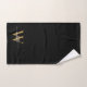 Serviette personnalisée élégante et féminine avec monogramme noir et or, style signature de nom personnalisé. Caractérisée par un prénom (ou nom de famille) dans un joli style de lettrage manuscrit avec une queue en arabesque (ou calligraphie) avec monogramme initial en or et blanc sur fond noir. Cadeau de pendaison de crémaillère élégant et féminin, également pour un anniversaire, un mariage, une soirée d'enterrement de vie de jeune fille, la fête des mères, une douche de mariée, une soirée d'anniversaire des 16 ans, un cadeau d'anniversaire de mariage et pour une fête de remise de diplôme. C'est pour la fille qui aime les choses élégantes et stylées.