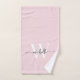 Serviette de main personnalisée Féminin Élégant Moderne Rose Blush Monogramme Initiale Nom Signature Écriture personnalisée. Caractérisé par un prénom (ou nom de famille) dans une jolie typographie à main levée avec un monogramme initial en blanc et noir sur fond couleur rose blush. Cadeau de pendaison de crémaillère élégant et féminin, également pour un anniversaire, un enterrement de vie de jeune fille, un mariage, la fête des mères, un anniversaire sweet 16, un enterrement de vie de jeune fille, un cadeau d'anniversaire de mariage et pour une fête de fin d'études et c'est pour la fille qui aime les choses élégantes et stylées.