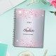 Un arrière - plan métallique à l'aspect faux argent décoré de poussière de parties scintillant rose. Personnalisez et ajoutez votre prénom, vos initiales monographiques, votre nom complet et une année.