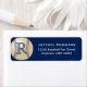 Un baseball sur un arrière - plan bleu foncé décore cette étiquette d'adresse de retour monogrammée. Vous pouvez facilement modifier le texte pour MONOGRAM, NOM et ADRESSE. Les invitations correspondantes peuvent être consultées à l'adresse www.zazzle.com/SocolikCardShop*. Les amateurs de sport apprécieront ! Tous droits réservés © 2014 Alan & Marcia Socolik.