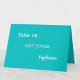 Nom d'hôte Meal Choice Aqua Turquoise Place Card avec texte blanc élégant sur un aqua bleu turquoise arrière - plan lumineux. Veuillez utiliser le modèle de personnalisation en ligne pour personnaliser chaque carte de place individuellement avant d'ajouter la carte au panier, pour montrer le numéro de table pour la table particulière où le client doit être assis, le nom du client et le choix de repas (ou restriction alimentaire) pour le client. (Répétez le processus de personnalisation pour chaque carte que vous souhaitez acheter, en ajoutant la carte au panier individuellement à chaque fois). Cette carte de place imprimée arrivera à plat et il faudra donc plier en deux avant de l'utiliser. (La taille avant pliage est d'environ 5 po de hauteur par 3,5 po de largeur, destinée à être pliée de sorte qu'environ 2,5 po par 3,5 po après pliage). Une fois la carte imprimée pliée, le même libellé apparaîtra de chaque côté (de façon à être visible des deux côtés d'une table). Une carte de visite personnalisée pour un mariage élégant ou pour toute autre occasion spéciale.