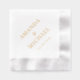Serviettes de mariage élégantes avec le nom du couple et le nom du mariage. Véritable feuille de texte sur un arrière - plan blanc.