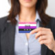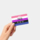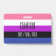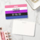 Le fond est le drapeau de la fierté pour les personnes genderfluid. Il s'agit d'un motif rayé de rose, blanc, violet, noir et bleu. Il y a de la place pour un nom personnalisé et des pronoms.