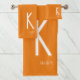 Terracotta Monogramme Nom Serviette de bain Set créé par szdesign. Serviette personnalisée minimaliste mais élégant, blanche, set avec la lettre initiale en terre cuite monogramme et nom sous la lettre. Un cadeau parfait ou un accessoire personnel facile à personnaliser (il suffit de cliquer sur le bouton "PERSONNALISER ce modèle").