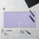 Nom Initial Personnalisé Monogramme Purple Desk Mat. Ajoutez une touche personnelle et élégante à votre espace de travail avec ce tapis de bureau personnalisé, parfait comme un accessoire de bureau ou un tapis de souris surdimensionné. Le design comprend un arrière - plan mauve mou avec un nom de script blanc initial et noir placé au centre inférieur. Vous pouvez déplacer le monogramme n'importe où si vous souhaitez utiliser les outils de conception pour adapter votre disposition personnelle. Toutes les couleurs, y compris l'arrière - plan et les polices de caractères, peuvent être customisées selon votre style ou votre décor de bureau. Un cadeau soigné pour les anniversaires, la fête des mères ou toute occasion spéciale, ce tapis simple et élégant ajoute une touche polie et personnalisée à tout espace.