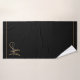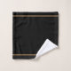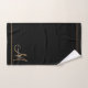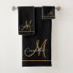 Ensemble de serviettes de salle de bain personnalisées avec nom de monogramme noir élégant en or avec bordures dorées. Renouvelez votre décoration de salle de bain avec un style typographique minimaliste.