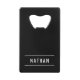 Ce simple ouvre-bouteille affiche votre nom dans un texte moderne et gras entre deux lignes droites sur un arrière - plan noir.