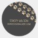 Nom et site web, empreinte de patte or sur un arrière - plan chic de charbon de bois, de mignons étiquettes promotionnels.