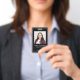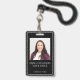 Un badge moderne avec votre nom et votre titre sur un arrière - plan noir. Ajoutez simplement votre photo et vos informations. Cette version est livrée avec une nacelle, mais vous pouvez choisir votre style de pièce jointe qui comprend, longe, clip métallique ou rétractable, ou aucune pièce jointe.