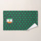 Serviette de SHAMROCK monogramme moderne, conçue avec un motif shamrock tout-en-un contre un arrière - plan vert foncé. Le drapeau irlandais est placé dans un cercle. Il y a du texte courbe PERSONNALISABLE en haut et en bas du cercle, plus un MONOGRAM qui est également personnalisable. Ce texte peut être remplacé par un message de bienvenue et/ou personnalisé avec votre nom, ou le nom de votre établissement. Cette serviette de toilette shamrock serait idéale à utiliser chez vous ou dans votre pub pour vos invités ou clients le jour de la Saint Patrick.
