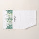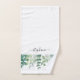 Cet élégant ensemble de serviettes de bain est décoré avec de la verdure d'eucalyptus aquarelle. Facilement personnalisable avec votre nom ou monogramme. Pour modifier davantage, utilisez l'outil de conception pour modifier la police, la taille de police ou la couleur. Parce que nous créons notre oeuvre, vous ne trouverez pas cette image exacte d'autres designers. Aquarelle originale © Michele Davies.