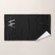 Serviette de main personnalisée élégante et féminine, style moderne, noir et gris, monogramme, initiale, nom, signature. Caractérisée par un prénom (ou nom de famille) dans une jolie typographie (ou calligraphie) à queue en forme de feston, avec monogramme initial en gris et blanc sur fond noir. Cadeau de pendaison de crémaillère élégant et féminin, également pour un anniversaire, un mariage, une soirée d'enterrement de vie de jeune fille, la fête des mères, une douche de mariée, une fête d'anniversaire des 16 ans, un cadeau d'anniversaire de mariage et pour une fête de remise de diplôme. C'est pour la fille qui aime les choses élégantes et stylées.