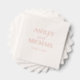 Augmentez votre célébration mariage avec notre *Modern Monogrammed Name Minimal Script Simple Rose Gold Foil Napkins*. Ces serviettes élégantes sont dotées d'une véritable feuille d'or rose sur un arrière - plan blanc immaculé, apportant une touche chic et élégante à votre journée spéciale. Conçus pour la personnalisation, ces serviettes vous permettent de les customiser facilement avec vos noms bien en évidence, ainsi que votre date de mariage ci-dessous. Ce détail attentionné améliore non seulement les réglages de votre table, mais sert aussi de joli souvenir pour vos invités de votre célébration. Parfait pour tous les thèmes mariages - que ce soit une grande affaire ou un rassemblement intime - ces serviettes mélangent harmonieusement style et fonctionnalité, assurant que votre événement est aussi mémorable qu'il est beau. Pour toute question sur les options de personnalisation ou les produits correspondants, n'hésitez pas à contacter le concepteur ! Copyright Anastasia Surridge, tous droits réservés.