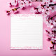Découvrez la beauté sereine des fleurs de cerisiers japonais avec notre Bloc-notes en fleurs de cerisier japonais de nom personnalisé. Délicatement orné de fleurs de sakura roses qui recouvrent le dessus et le bas, ce bloc-notes dégage une atmosphère de tranquillité et de grâce. Le centre est soigneusement bordé de lignes roses douces, assurant une écriture soignée et élégante. Personnalisez le bloc-notes avec un nom personnalisé imprimé dans un joli script en haut, ajoutant une touche de charme personnel à ce design élégant et raffiné. Parfait pour les réflexions personnelles et les prises de notes professionnelles, ce bloc-notes est un ajout délicieux à toute collection de papeterie, incarnant l'essence de la gracieuse élégance Sakura.