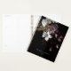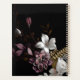 Ce carnet est décoré d'une belle décoration florale rose, blanche et or foncé et moody sur un arrière - plan noir.