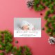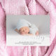 Nom script photo bébé faire-part de naissance avec un élégant script moderne et couverture blanche avec un vrai papier d'argent.