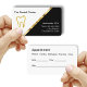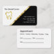 Un rendez-vous de bureau Dentist classique et un modèle combiné carte de visite avec un design moderne qui comprend un symbole de dent de couleur or, une ligne de séparation géométrique à l'allure classe imprimée sur un stock carte de visite arrondi d'angle pour un dentiste, une clinique dentaire, un orthodontiste ou des implants dentaires.