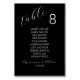 Simple script élégant noir et blanc carte de numéro de table avec des noms.