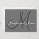 Un design faire-part de mariage simple et moderne avec votre nom de famille, vos noms de mariée et de mariée en gris et blanc, fait de ce modèle un faire-part de mariage polyvalent, car votre nom et votre prénom créeront votre propre design unique. Monogramme Faire-part de mariage Conception par Elke Clarke ©2008. Customisez avec votre monogramme, vos noms et vos couleurs mariages. Ajoutez toutes vos informations mariages au verso de la carte en utilisant les invites de menu faciles à utiliser de Zazzle. Vient avec une enveloppe blanche vierge. Pour les accessoires correspondants, voir les liens ci-dessous.