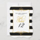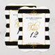 Si vous cherchez une solution élégante et peu coûteuse pour les numéros de table de votre réception de mariage, douche de mariée ou autre événement formel, ces cartes sont un excellent choix. Ce design comporte le nom des mariés et la date du mariage en haut (vous pouvez mettre les informations que vous souhaitez s'il s'agit d'un événement différent comme une fête d'anniversaire, une fonction professionnelle ou un autre événement de gala). Vous pouvez personnaliser autant de tables que vous le souhaitez - il suffit de cliquer sur la zone du modèle, de taper votre numéro de table (ou nom de la table) et de le placer dans votre panier. Répétez autant de fois que nécessaire. Un fond moderne à rayures larges noires et blanches avec une fine bordure dorée ajoutée est associé à un élément de cadre de flourish de défilement dessiné à la main et à un mot de typographie calligraphique "Table"