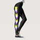 Leggings with the hearts and stripes in colors of the non-binary / enby pride flag; a design with yellow, white, purple, and dark gray hearts and stripes on a black background