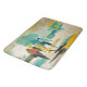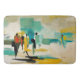 This contemporary abstract artwork captures the lively energy of midday through expressive figures and a fresh, luminous color palette. Simplified human forms move across layered fields of turquoise, soft teal, warm yellow, and gentle neutrals, creating a scene that feels light, open, and full of quiet motion. The loose brushwork and subtle geometry suggest a shared public space—urban yet airy—where light and movement define the moment more than detail.