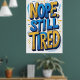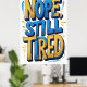 Une affiche de typographie sarcastique dessinée à la main avec l'expression "Nope, Still Fatired" en lettres expressives. Un art mural idéal pour les chambres, les dortoirs ou les bureaux, et un cadeau amusant pour quiconque aime l'humour et les citations pertinentes.