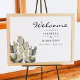 Ce panneau d'accueil mariage présente des cactus de poitrine de prickly d'aquarelle et une police de caractères propre. Modifiez tous les textes pour répondre à vos besoins.
