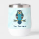 Eine niedliche Eule in Braun und Blau, im nordischen Volkskunst-Stil, überlagert auf einem verschneiten Hintergrund. Passen Sie Ihren eigenen Text an. In Norse/Wikinger Mythologie symbolisieren Eulen Weisheit und Erleuchtung. Die modernen Skandinavier verbinden Eulen mit Wohlstand, Glück und Intelligenz.