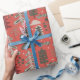 Nordic Green und White Tree Muster auf Red Geschenkpapier