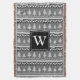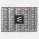 Diese Wurfdecke hat einen kühnen, schwarzen, weißen und grauen nordischen Strick, inspiriert Tannenbaummuster mit Akzentformen und enthält ein schwarz dekoratives Quadrat mit Ihrem personalisierten Monogramm-Buchstaben in Weiß.