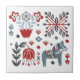 Diese attraktive Keramik-Kachel hat ein wunderschönes und faszinierendes nordisches oder skandinavisches Muster in Blau, Grau, Rot und Weiß. Die Bilder beinhalten Blumendesigns, ein dekoriertes Pony, Herzen und Strichzeichnungen. Sehr hübsch, vor allem als Wanddekoration an der Grenze.