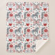 Diese attraktive sherpa Decke hat ein schönes und verwickeltes Nordic- oder Skandinaviermuster im blauen Grau, im Rot und im Weiß. Bilder umfassen Blumenmuster, ein verziertes Pony, Herzen und Strichzeichnungen. Einzigartig und sehr hübsch!